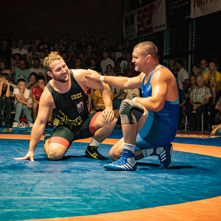 Bis 97kg Freistil kams zur Wiederholung der letztjährigen Begegnungen zwischen Andrii Vyshar und Damian Dietsche, die allesamt sehr knapp an den 44-jährigen Oberrieter gingen. Auch dieses Jahr war die Begegnung hart umkämpft, Vyshar führte zur Pause nur knapp mit 3:2 Punkten und gewann den taktisch klug geführten Kampf zum Schluss mit 6:2.